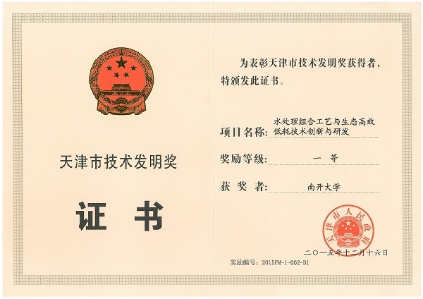 天津市技术发明奖一等奖
