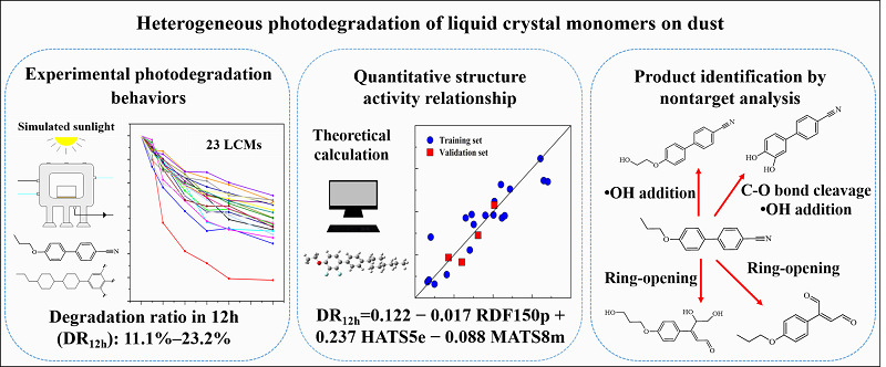 Heterogeneous photodegradation behavior of liquid crystal monomers in dust: Quantitative structure-activity relationship and product identification. Environmental Science & Technology, 2024, 58, 3908-3918.