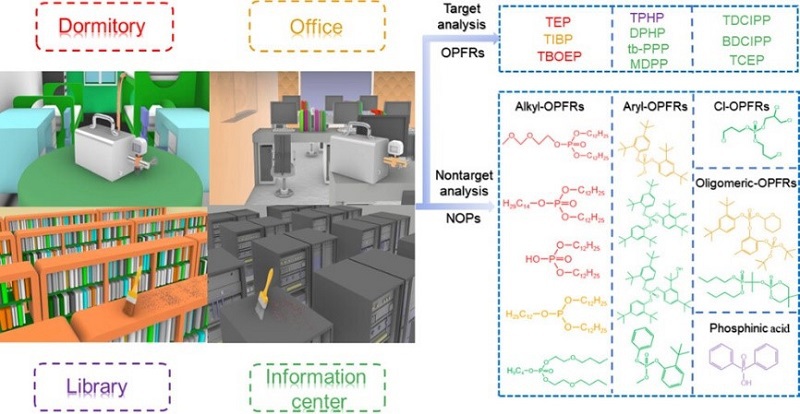 开发新型空气监测技术,利用非靶向质谱高通量分析识别环境中新型有机磷阻燃剂和塑化剂