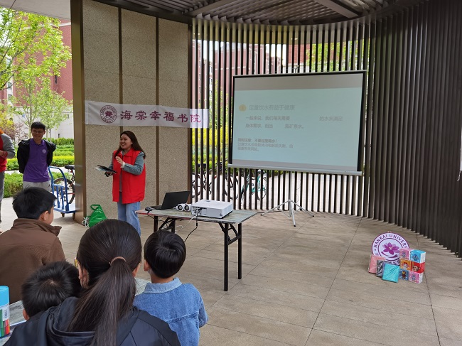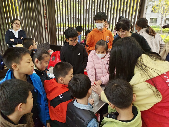 据悉,创新性劳动服务是《服务学习:饮用水与健康》课程的主旨理念,课程将“设计思维五步法”引入教学,在活动开展之前对文莱花园居民和社区小朋友进行了“同理心”访谈,深入了解大家日常生活中对健康饮水、节约用水、保护水资源等方面需求的基础上,由课程同学全程自主专项策划设计而成。在实现对居民、小朋友“节水、低碳、环保、健康饮水”理念、知识传递的同时,也通过创意手工等活动旨在实现“创新性劳动”的老员工、小朋友之间的双向协同培养。