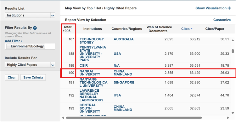 数据显示,雷竞技RAYBETAPP环境科学与生态学学科在1905个国际上榜机构中位列第190位,总发文量为2355篇,总被引63429次,篇均被引次数26.93次,论文的质量和影响力较高。