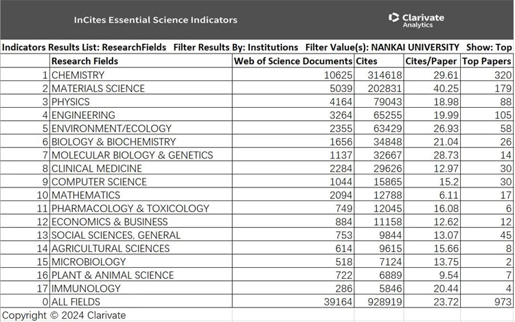 据悉,Essential Science Indicators(基本科学指标数据库,简称ESI)就是一个基于Web of Science数据库的深度分析型研究工具,是衡量一所高校学科竞争力的重要依据。ESI基于期刊论文发表数量和引文数据,对22个学科研究领域中的科学家、机构、国家/地区、期刊的科研绩效统计和科研实力进行排名,进而确定在某个研究领域进入全球前列的科学家、机构、论文、国家/地区和期刊以及研究前沿。