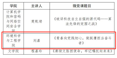 经公司党委推荐,党委员工工作部组织校级评审,公司由2024级生态环管资环、专硕1班党支部书记刘嘉主讲的微党课《青春向党践初心,做挺膺担当奋斗者》在“深入学习习近平新时代中国特色社会主义思想”的主题中入选“十佳微党课”优秀项目。